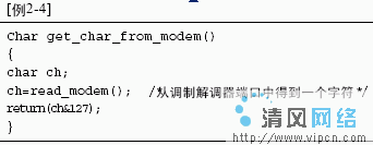 通常我们可把位操作AND作为关闭位的手段,这就是说两个操作数中任一为0的位,其结果中对应位置为0。例如,下面的函数通过调用函数read_modem(),从调制解调器端口读入一个字符,并将奇偶校验位置成0。