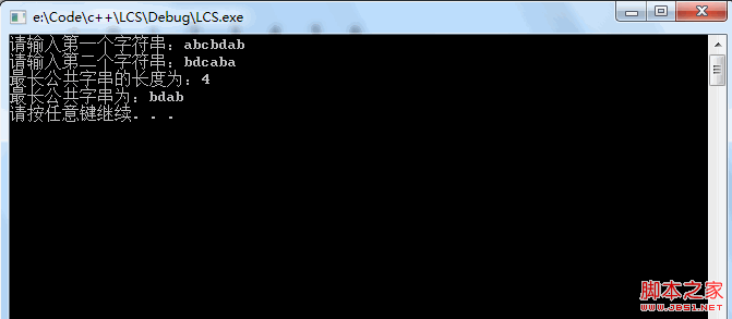 例如:输入两个字符串BDCABA和ABCBDAB,字符串BCBA和BDAB都是是它们的最长公共子串,则输出它们的长度4,并打印任意一个子串。