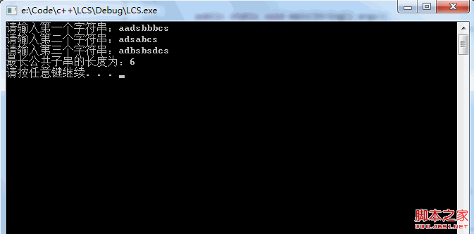 思路:跟上面的求2个字符串的公共子串是一样的思路,只不过这里需要动态申请一个三维的数组,三个字符串的尾字符不同的时候,考虑的情况多一些而已。
