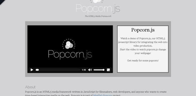 Popcorn.js利用原生HTMLMediaElement属性,方法和事件,它们归成一个简单易学的API,并提供一个插件来扩展功能。