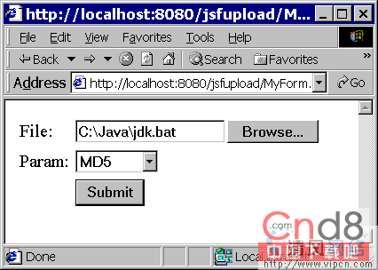 当用户点击表单的Sumbit按钮,浏览器对表单数据进行编码,其中包括文件的内容,名字,路径以及其他的表单参数。然后,浏览器把编码过的数据传递给web服务器,服务器再把这些数据传递给相应的页面,比如<form>标签里的action属性值。假如是java网络应用程序,action属性值可能是个servlet或者是个jsp页面。
